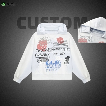 Großhandel Hochwertige 100% Baumwolle Cropped Hoodie 3D geprägt Französisch Terry Heavyweight Overs ized Acid Wash Kapuzen kragen Herbst