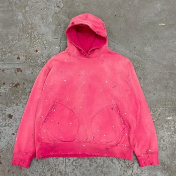 Vintage 1996 Herren übergroßen Hoodie 380GSM Terry Cotton Custom Logo Besticktes Enzym Dirty Washed Cracked Fade Print