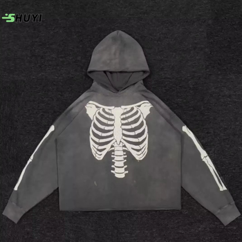 Benutzer definierte Herren Acid Wash Distressed Cracked Skeleton Print Halloween Hoodies 420GSM Cotton Boxy Vintage Herren Hoodie & Sweatshirt